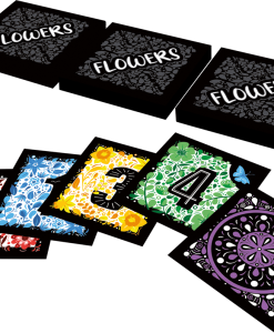 Dans Flowers, créez votre zone de jeu en disposant au mieux les cartes devant vous. Respectez les conditions liées aux valeurs pour maintenir vos cartes et marquez des points avec vos familles de couleurs. Attention, les cartes qui ne respecteront pas les conditions vous feront perdre des points !
