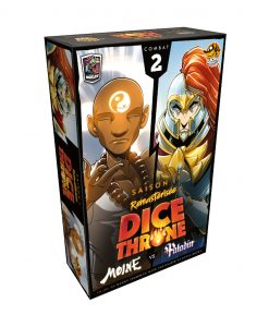 Dice Throne est un jeu compétitif ou en équipe, proposant des combats à base de dés et de pouvoirs spécifiques à chaque personnage. Dans cette seconde boite vous incarnerez le Paladin ou le Moine dans un combat épique !
