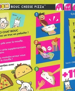 Taco Chapeau Gâteau Cadeau Pizza est un jeu de rapidité et de défausse dans lequel les joueurs doivent taper sur la pile centrale pour se débarrasser de leurs cartes.