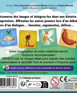 Speech est un jeu d'improvisation et de communication dans lequel les joueurs découvrent des images et les intégrent dans une histoire improvisée.
