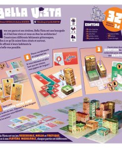 Dans Bella Vista, vous êtes architectes et vous vous efforcez d’offrir à vos résidents la meilleure vue possible sur les parcs de la ville. Pour y parvenir, vous devez construire des bâtiments de huit hauteurs différentes, en visant toujours à être les plus hauts du quartier afin de marquer le plus de points possible !