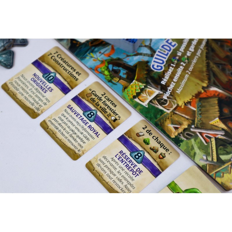 Silverfrost est le prochain jeu autonome de la série de carte géographique d’Everdell. Au-delà des montagnes enneigées de Spirecrest, au sud de la vallée d’Everdell, s’étend l’imposante contrée de Silverfrost. Votre mission est de bâtir et d’entretenir une ville dans ce paysage hostile. Vous devez déblayer la neige qui s’accumule, allumer des feux pour garder vos citoyens au chaud et prospères, et accomplir des quêtes importantes pour la Guilde des Rangers.