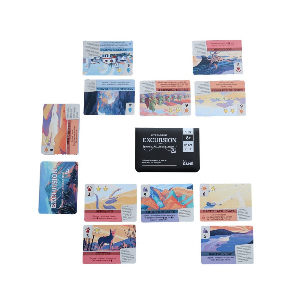 À chaque tour, les joueurs choisissent d’attribuer une carte à leur voyage ou de déplacer des cartes de leur voyage vers leur album. Les cartes comportent des étoiles (points), des capacités spéciales (qui affectent la valeur et la position des cartes) et des faits intéressants sur la Vallée de la Mort.