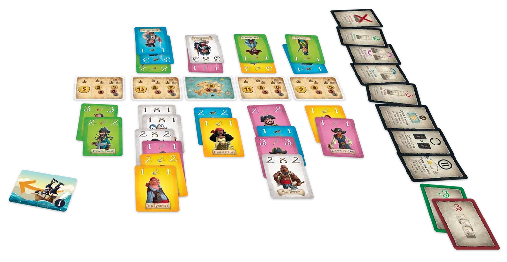 Chaque capitaine dispose de 7 cartes Pirate et d’une carte Action pour imposer sa loi et rafler les plus gros butins.