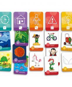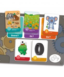 Les cartes représentent les éléments de base du récit et sont placées sur une planche de jeu, ce qui permet aux enfants de visualiser leur histoire au fur et à mesure qu’elle se forme et de la raconter en y intégrant tous les éléments.