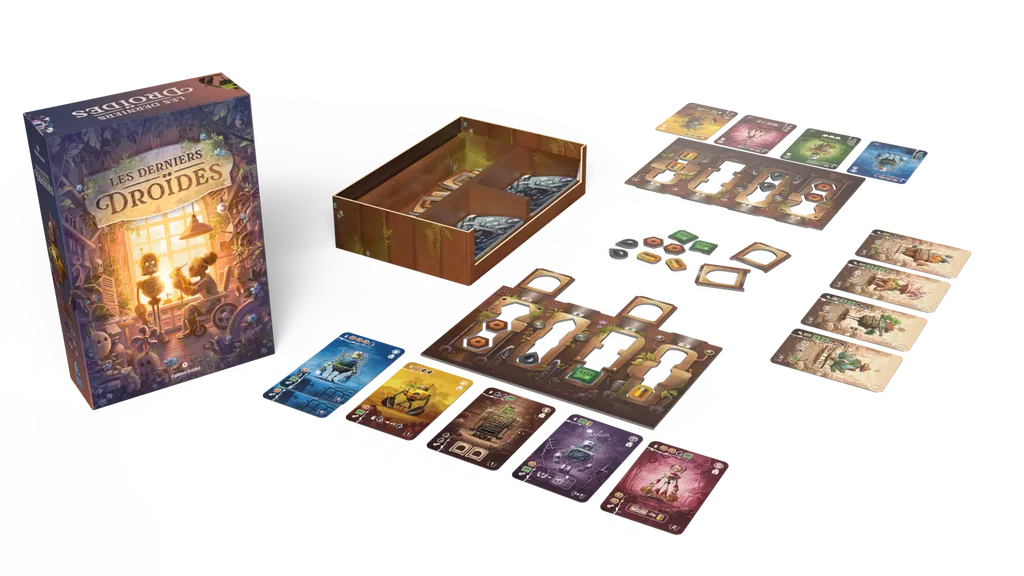 Il existe 6 types de Droïde différents ainsi que 14 Habitations, chacune avec son scoring particulier. À chaque partie, on joue 4 Habitations parmi les 14.