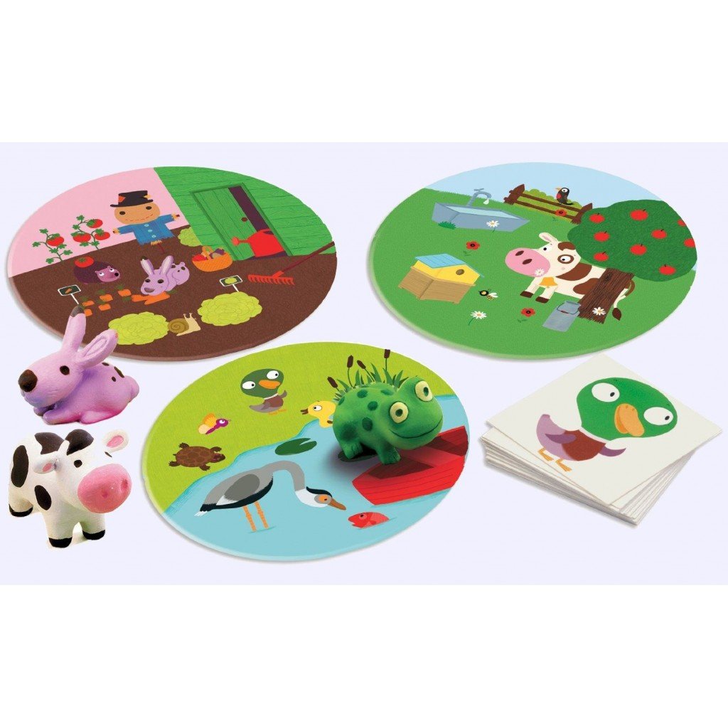 Le lapin vit dans le potager, la vache dans le pré et la grenouille dans la mare.