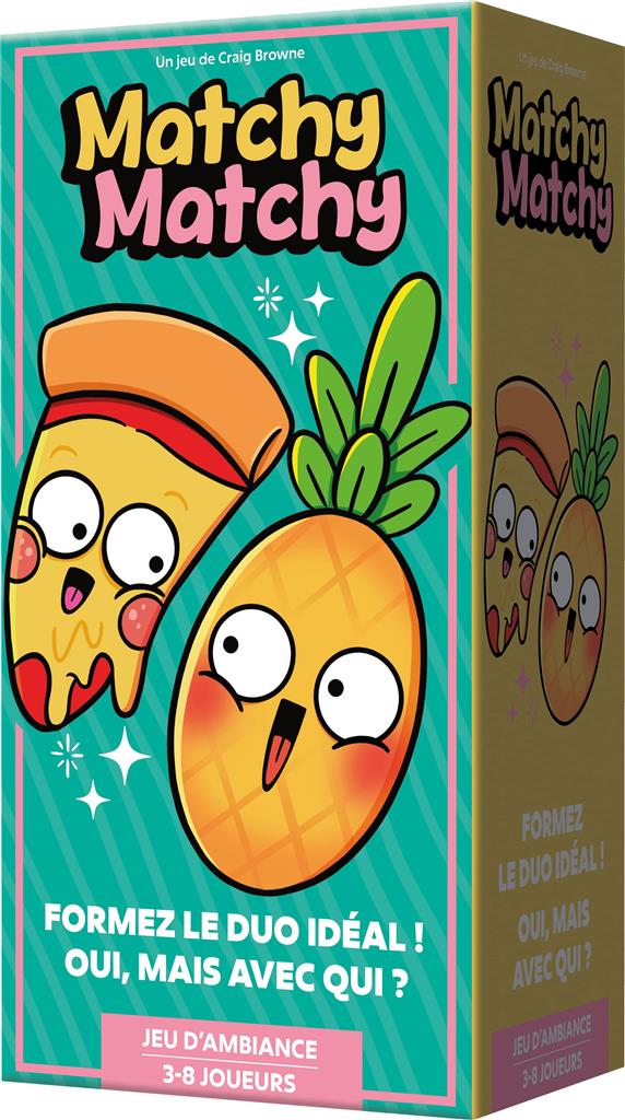 Avec 576 thèmes différents, des parties de 30 minutes et un matériel coloré et qualitatif, Matchy Matchy est parfait pour des sessions pleines de rires, en famille ou entre amis. Il se joue aussi bien à 4 qu’à 8, en équipes fixes ou avec un référent si vous êtes en nombre impair. Vos goûts (bons ou très discutables) parleront pour vous !
