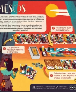À chaque tour, vous devez placer votre pion totem sur la piste d’offre, puis en suivant l’ordre des pions sur la piste, vous acquerrez des cartes de personnage ou de bâtiment et les ajouterez à votre tribu. Chaque carte a des effets spécifiques et peut rapporter des points de prestige (PP) à mesure que vous construisez des bâtiments spécialisés et que vous vous préparez judicieusement aux événements futurs.