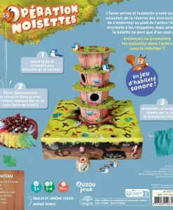 Opération Noisettes est un jeu d’habileté sonore, dans lequel vous devrez récupérer des noisettes et les déposer dans l’arbre sans réveiller la belette.