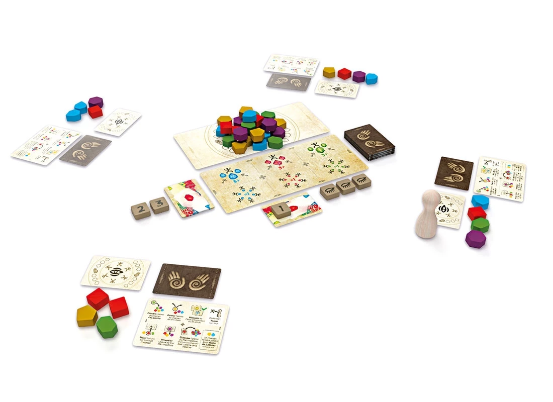 À chaque tour, un joueur effectue une action parmi sept disponibles, mais sans aucun échange verbal ou gestuel. Chaque décision doit être interprétée à la lumière du contexte, poussant à une coopération intuitive et sincère. L’objectif : synchroniser les efforts du groupe pour récolter les bonnes pierres et franchir ensemble les six étapes du rituel avant la fin du temps.