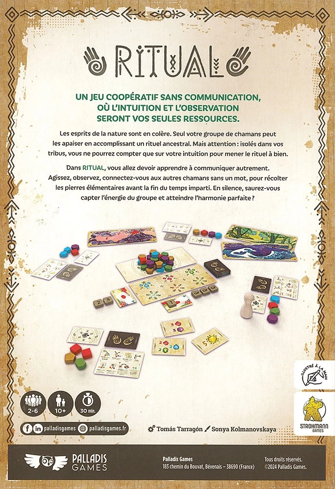 L’ambiance est chargée d’émotions, les liens se tissent sans un mot, et la réussite n’est possible qu’à travers une connexion profonde entre les joueurs. Ritual propose ainsi une forme de coopération épurée, pleine de tension et de poésie, offrant à chaque partie une résonance unique autour de la table.