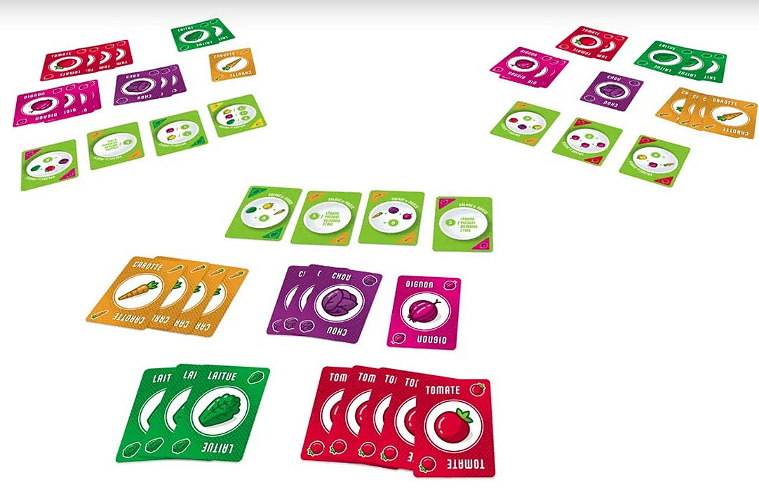 Salade 2 points est un jeu de cartes et de collection simple et amusant pour toute la famille. Avec plus de 100 façons de marquer des points, chaque partie est unique, et les joueurs vont pouvoir multiplier les stratégies pour essayer de gagner ! Le marché évolue tout au long de la partie, choisissez les meilleures combinaisons de légumes et d’objectifs pour composer la meilleure salade de points.