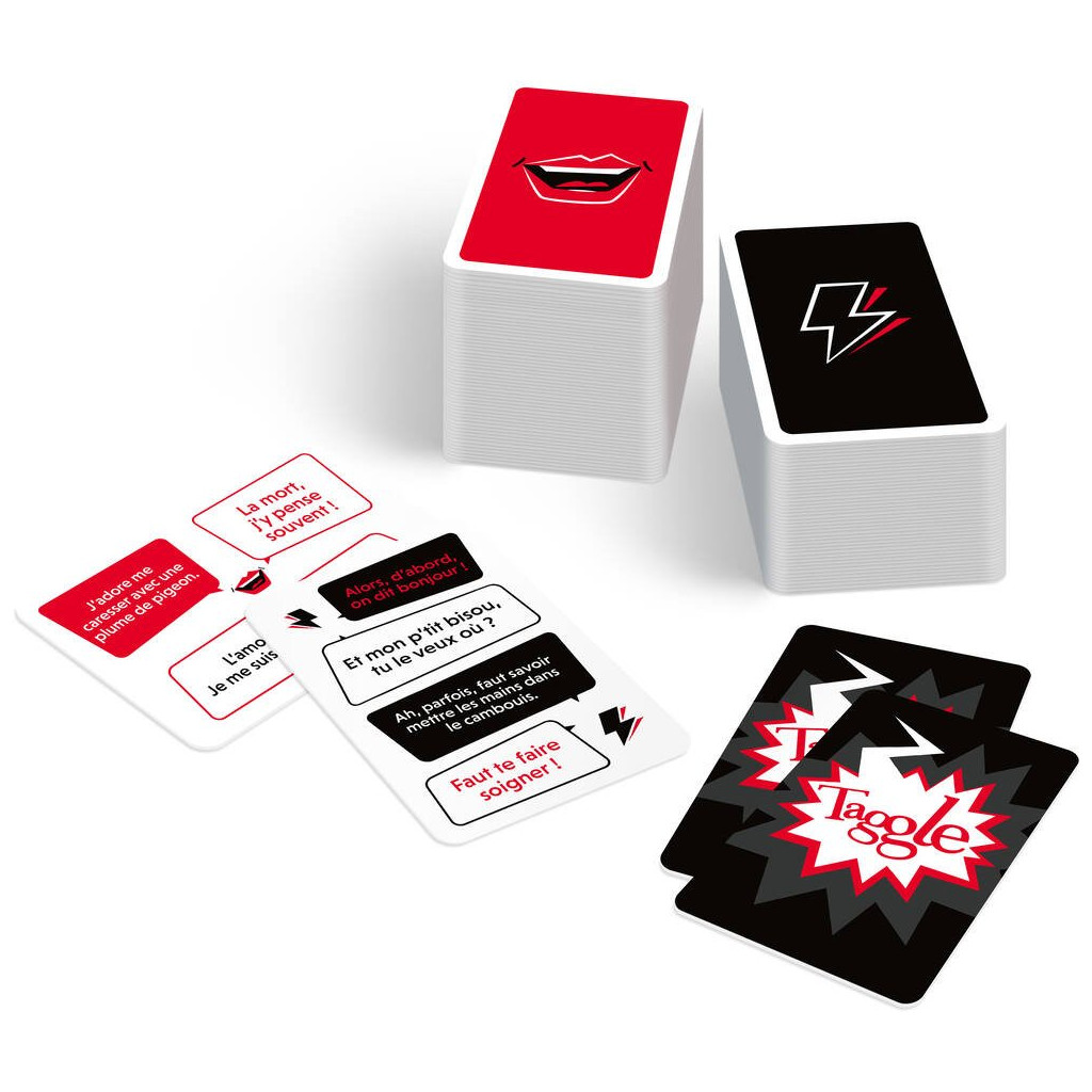 Avec Taggle, c’est le moment de l’ouvrir ! Dès qu’un joueur te lit une réflexion, réponds-lui avec une réplique qui claque, sinon c’est à toi que l’on dira… Taggle !