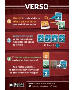 Vous pouvez également jouer à Verso en solo, en alternant les tours avec un adversaire simulé qui peut changer la couleur de l’une de vos cartes les plus fortes. Essayez de dépasser le score de 64 des concepteurs.