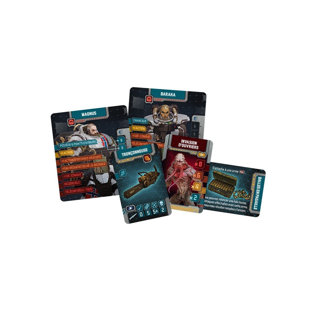 Avec vos amis, formez une équipe composée de survivants d’une colonie spatiale envahie par une horde de Xénos infectés ! Les Xénos sont contrôlés par le jeu à l’aide de cartes et de règles simples. Trouvez des armes, éliminez les Xénos et, grâce à l’expérience, améliorez les compétences de vos survivants. Plus vous tuez de Xénos, plus ils sont nombreux ! Jouez 10 missions sur 10 plateaux différents composés à partir des dalles modulables de cette boîte, ou créez vous-même vos propres scénarios.